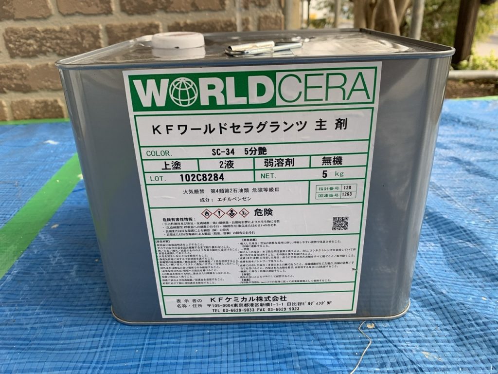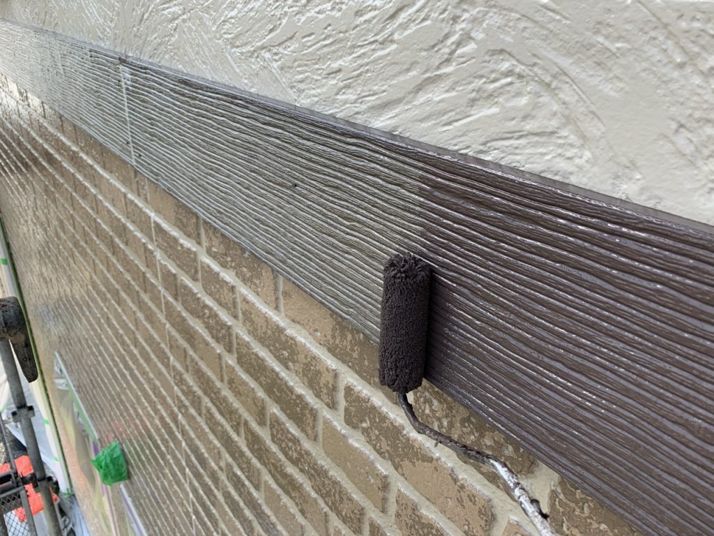 帯も外壁と同じKFワールドセラグランツで塗装して行きます。