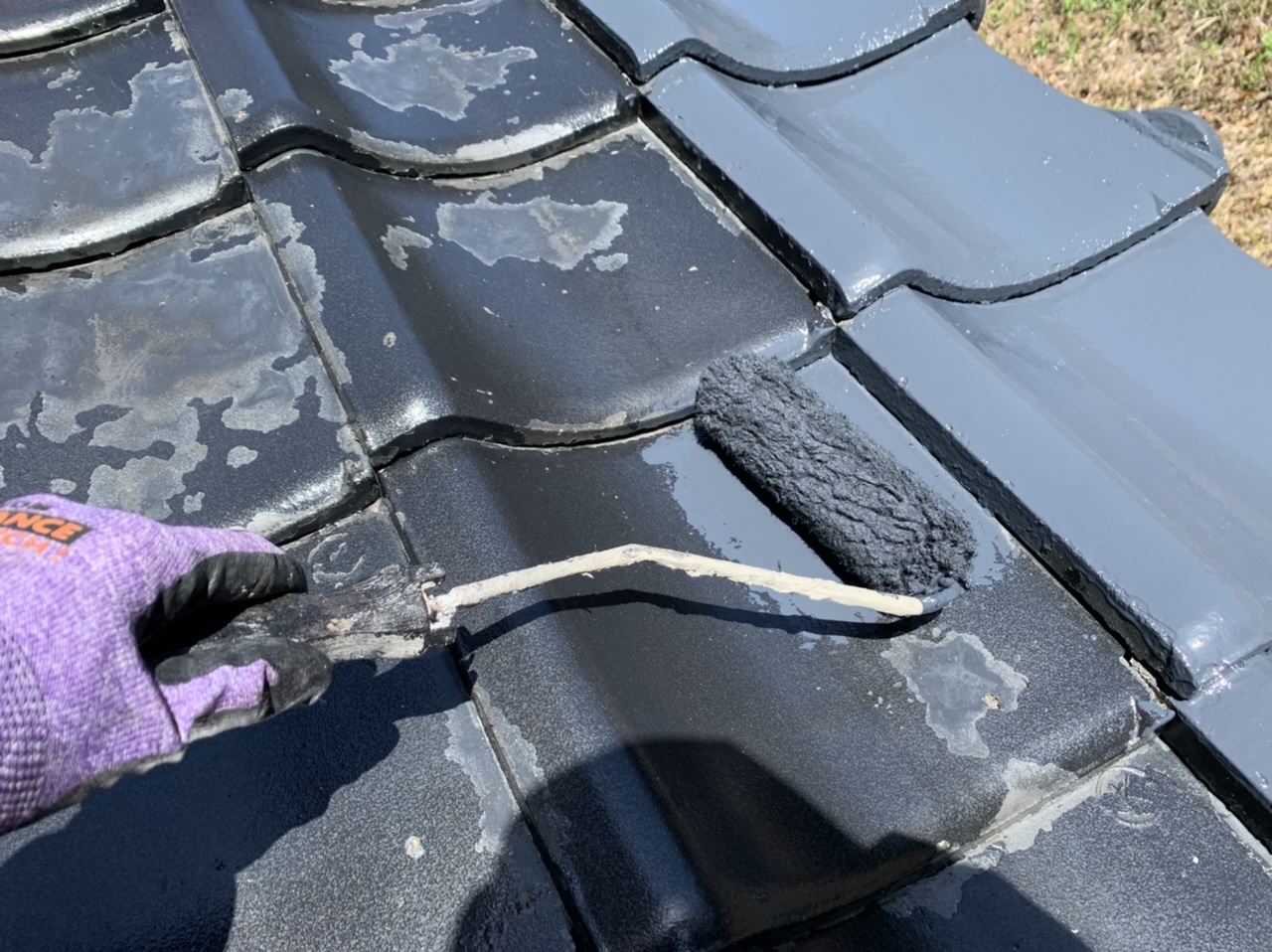 下松市S様邸の屋根塗装は中塗りまで完了しました。