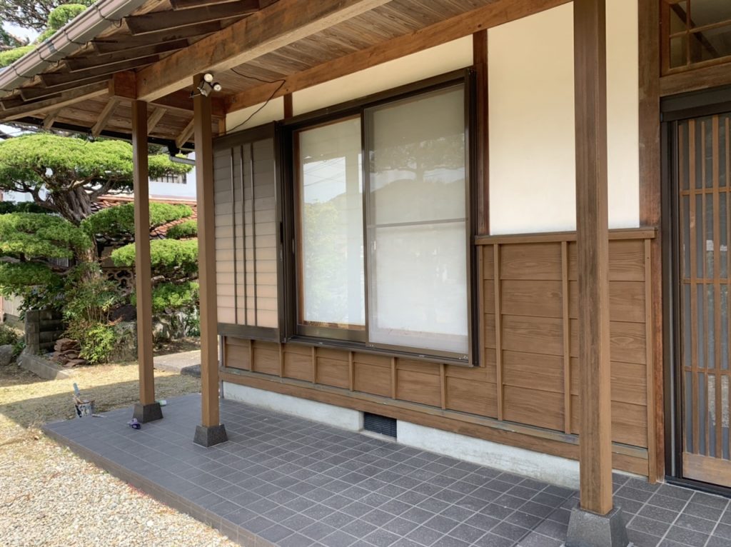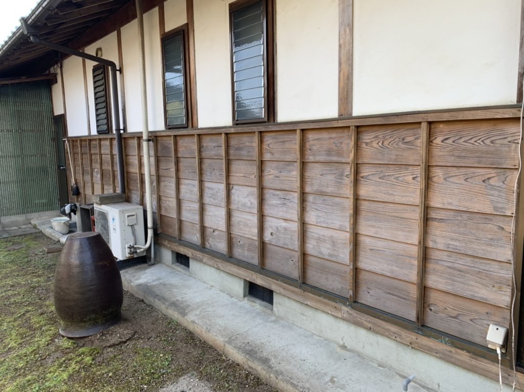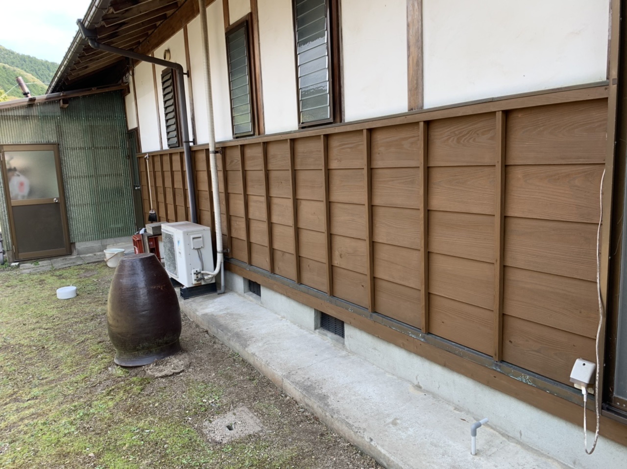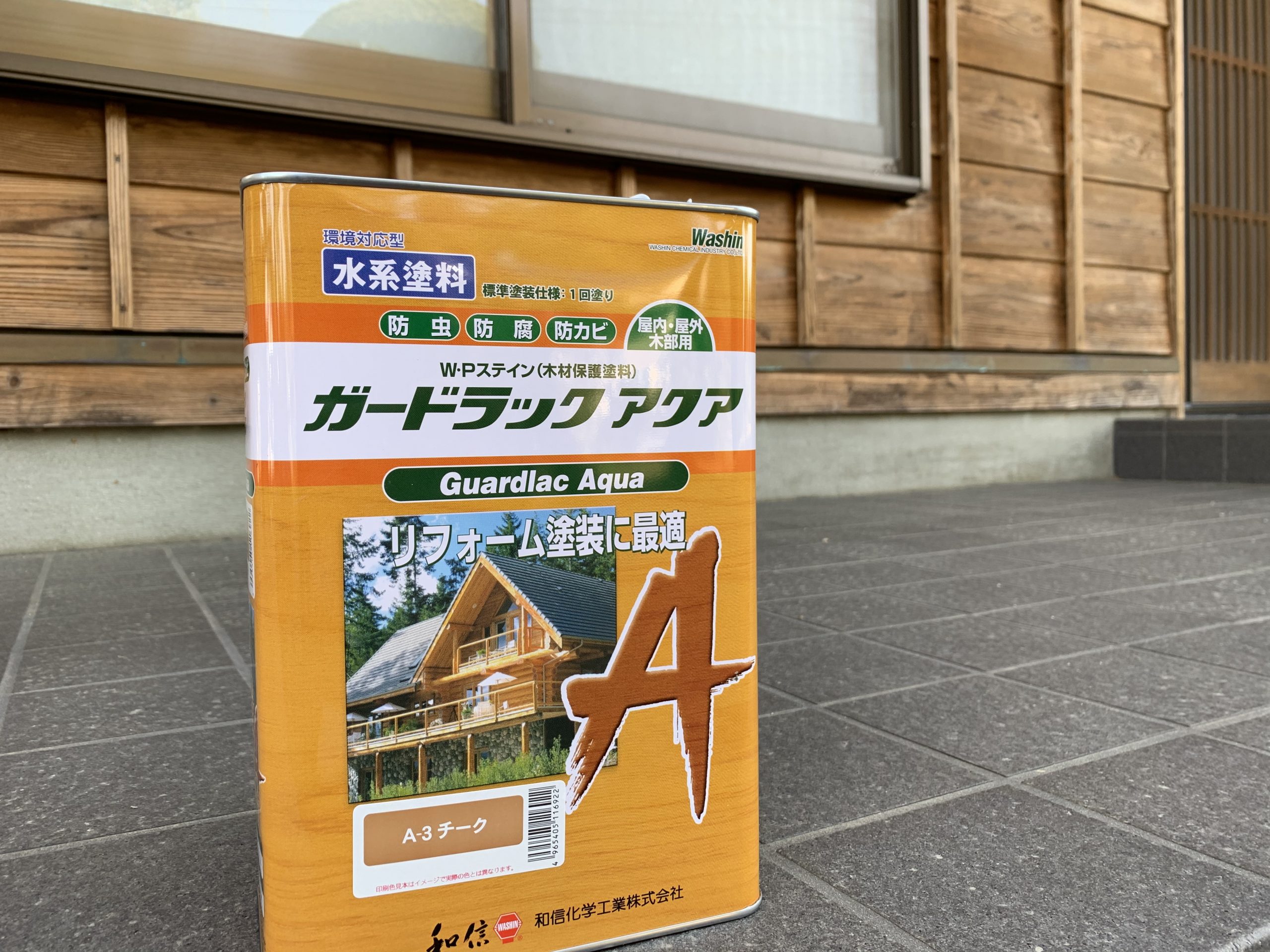 杉板の傷みが進行しいたので、今回は半造膜タイプのガードラックアクアを使用して塗装しました。水性で塗り易く、耐久性のいい塗料です。